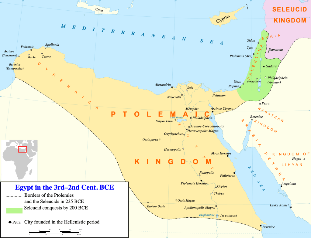 “Ptolemy established a secure kingdom for himself in Egypt, aided by he regions geographical isolation and extreme fertility. Of all the Diadochi, the first Ptolemy was least interested in territorial conquest, preferring to safeguard his kingdom by establishing a string of allied cities and garrisoned fortifications at strategic points around the shores of the eastern Mediterranean. Strategic points allowed him access to the raw materials needed to build and maintain a fleet, as they allowed him to safely block the ambitions of his rivals far from the borders of Egypt.” (Murray 191-193).