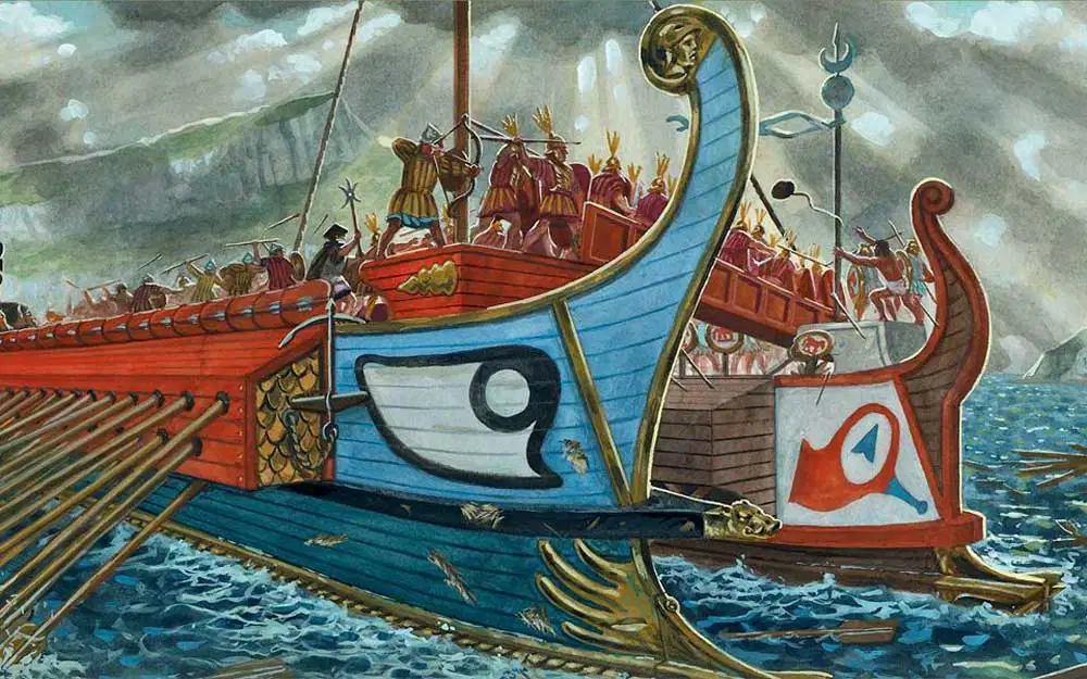 Another advantage iterated in the book is that these larger ships had gunwales that surpassed the height of other ships, offering a strategic edge to the skirmishers on board.